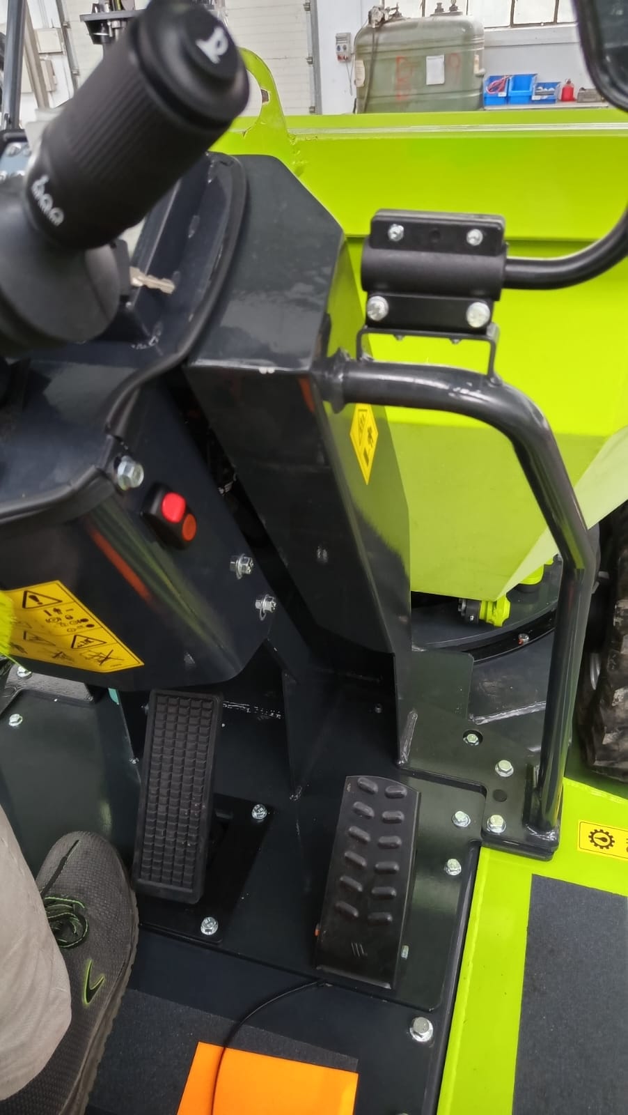 Le poste de conduite offre une excellente visibilité et une ergonomie étudiée pour l’usage quotidien : siège réglable avec accoudoirs, commandes simples, frein négatif automatique, avertisseur sonore de recul et sécurité ROPS intégrée.